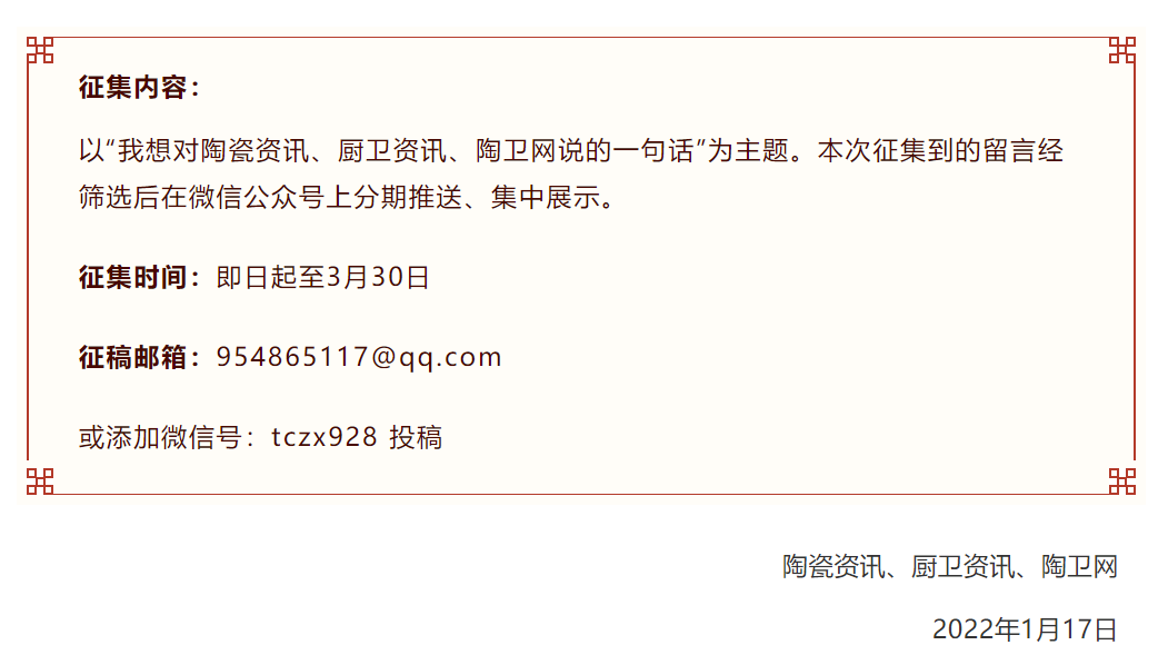 此前《15周年慶征稿啟事|我與陶瓷資訊、廚衛資訊、陶衛網的故事》在行業內反響熱烈,收到不少朋友投稿。