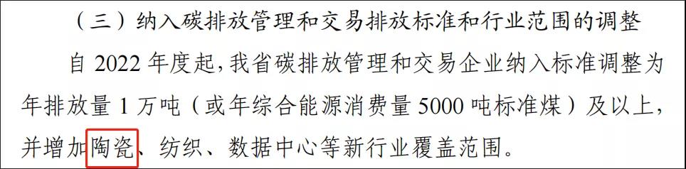 實際上,早前湖北、福建、遼寧等產區的陶企已經被納入了碳配額管理范圍中。