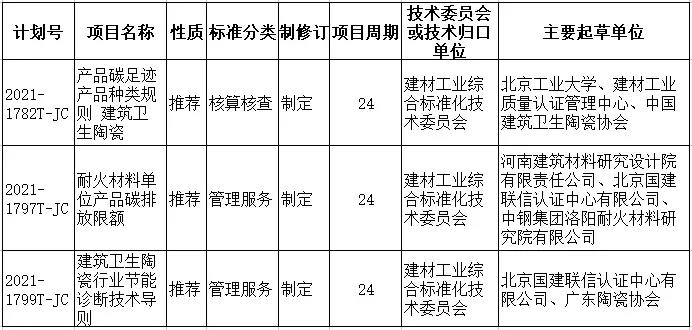 為發揮標準在推進工業領域碳達峰碳中和工作的引領和規范作用,工業和信息化部于2021年12月22日下達了工業領域首批110項碳達峰碳中和專項行業標準制修訂項目計劃,其中,陶瓷行業共有3項(見附表)。本批行業碳達峰碳中和專項行業標準重點圍繞碳核查核算、低碳技術與裝備、低碳產品與企業評價、監測設備與方法、碳排放以及綠色低碳建材評價、資源綜合利用協同降碳等方面。