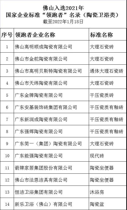 至2022年,佛山共有139項標準入選2021年國家企業標準“領跑者”,累計企業標準“領跑者”達到245項,數量均穩居全國第一。