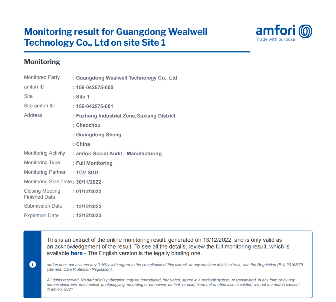 為開拓國際市場,進(jìn)一步擴(kuò)大貿(mào)易合作發(fā)展空間,廣東櫻井科技有限公司引入國際標(biāo)準(zhǔn)化管理體系,接受BSCI企業(yè)認(rèn)證的審查,經(jīng)過專業(yè)的文件資料審核、企業(yè)現(xiàn)場審核、員工訪談等一系列環(huán)節(jié),于近日順利通過BSCI認(rèn)證的審核。