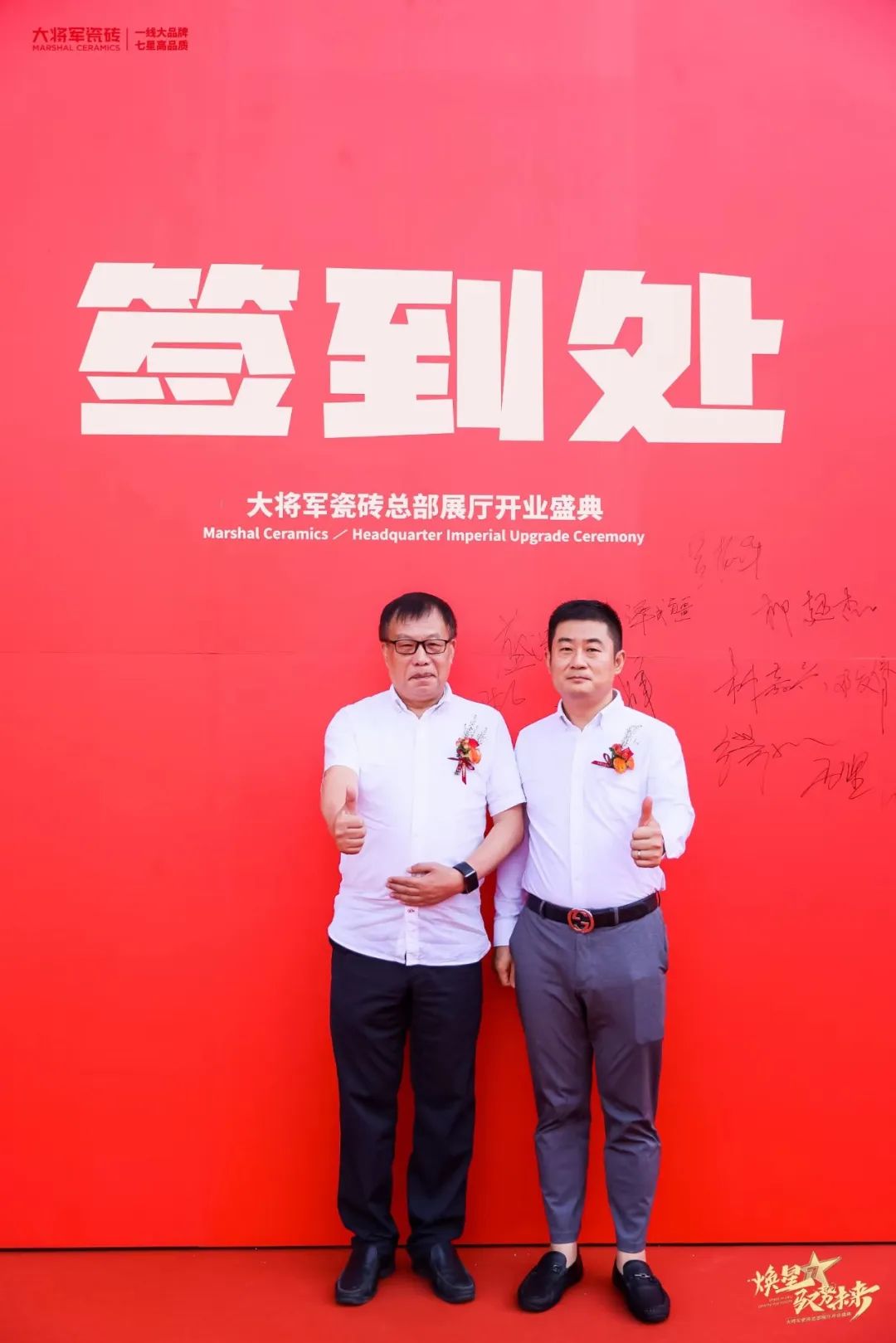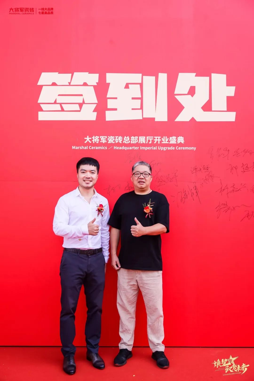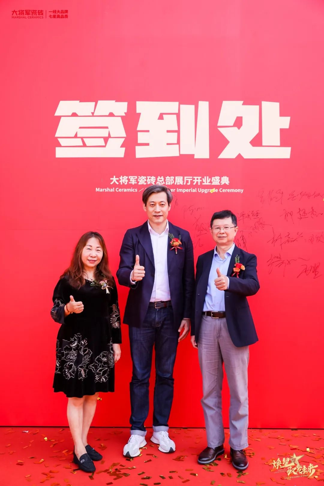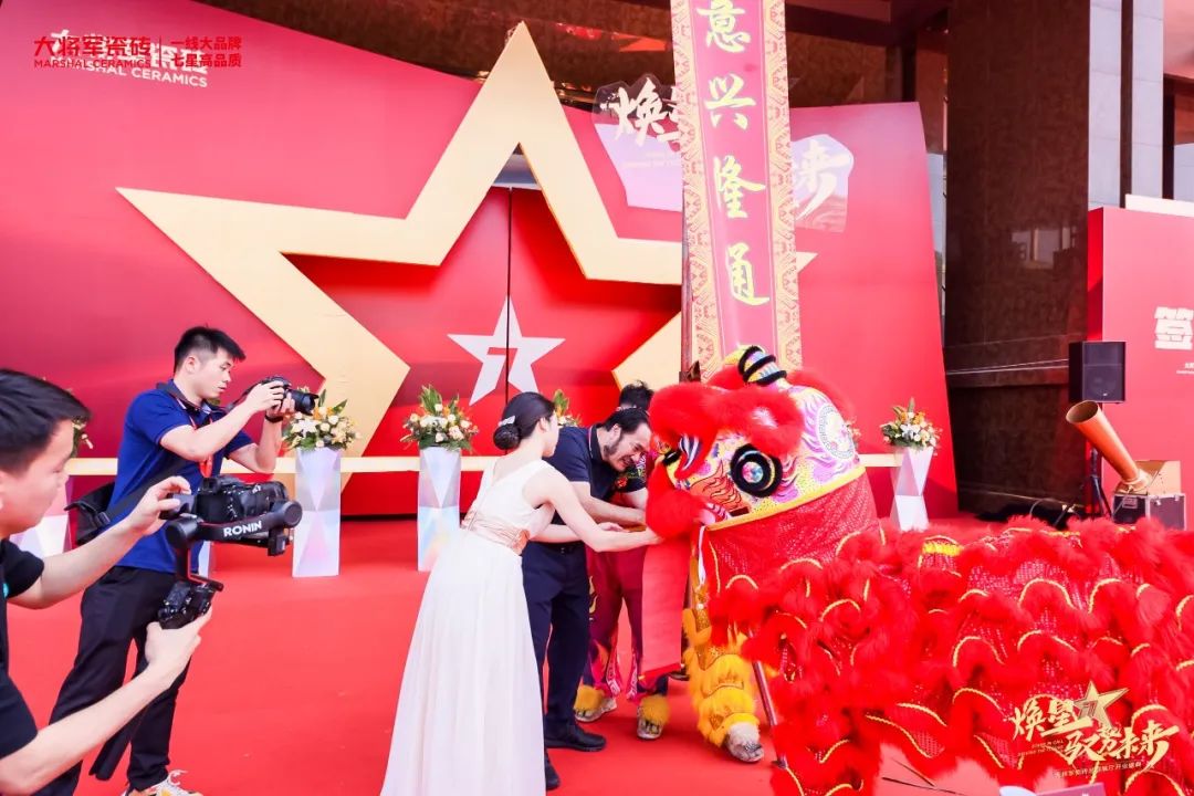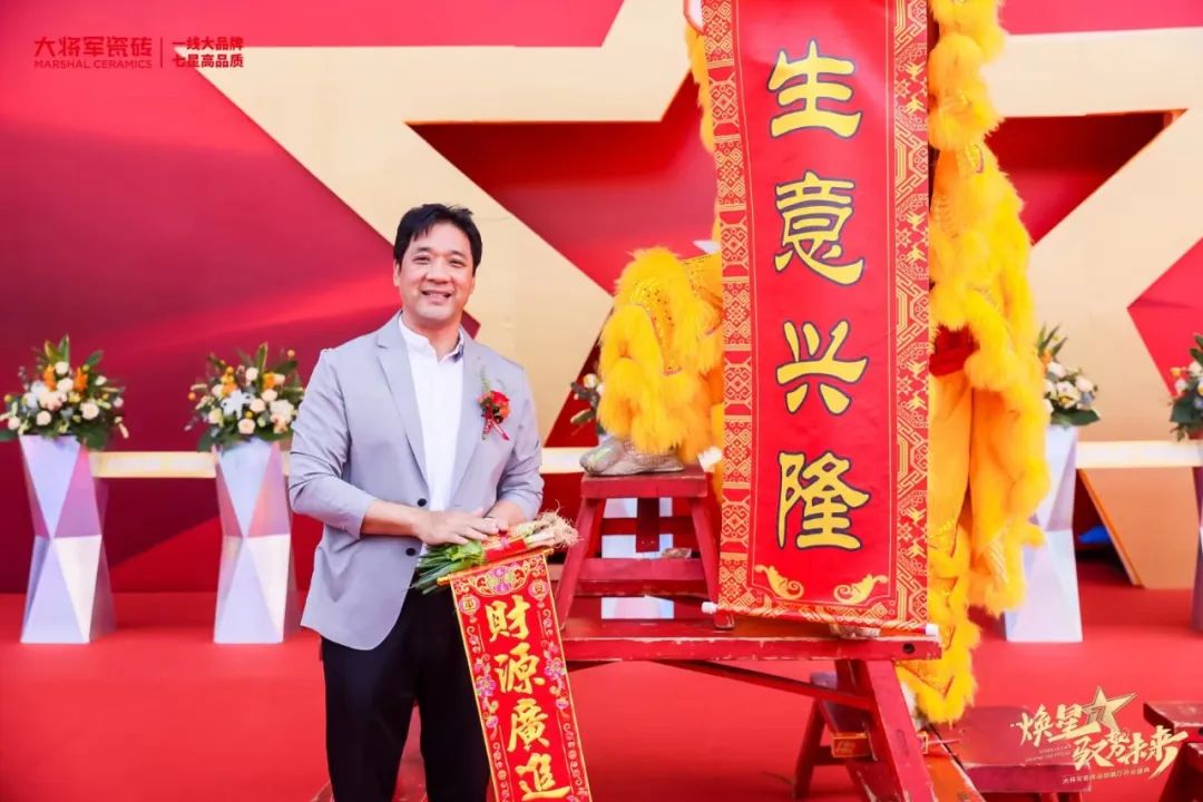 慶典當天,鑼鼓喧天,醒獅獻瑞?;ɑ@簇擁,歡聲笑語?,F場布置紅紅火火,處處洋溢著歡樂喜慶的氛圍。領導、嘉賓和經銷商客戶陸續進場簽到,共同祝賀大將軍瓷磚展廳開業大吉、財源廣進、宏圖大展!