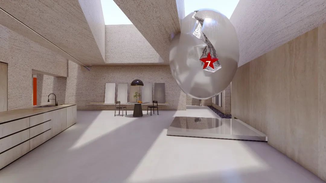 大將軍全新的七星藝術館以博物館的定位基調,融合大將軍瓷磚品牌標識以及國風元素,打造了蘊含自然哲學與國際頂尖設計美學的現代化展廳。通過品牌超級符號以及蘊藏內涵的不規則圓形狀雕塑進行空間的貫通,形成主題以及視覺的連貫性。展廳內更設立了擺放十二生肖的概念空間,為展廳注入了“以人為本,人生萬物”哲學理念。