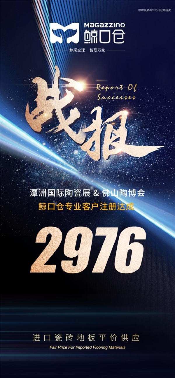 2976!以客戶信任成就數(shù)據(jù)新階段,截至潭洲陶瓷展與佛山陶博會(huì)結(jié)束,鯨口倉(cāng)小程序?qū)I(yè)客戶注冊(cè)已突破2976人!
