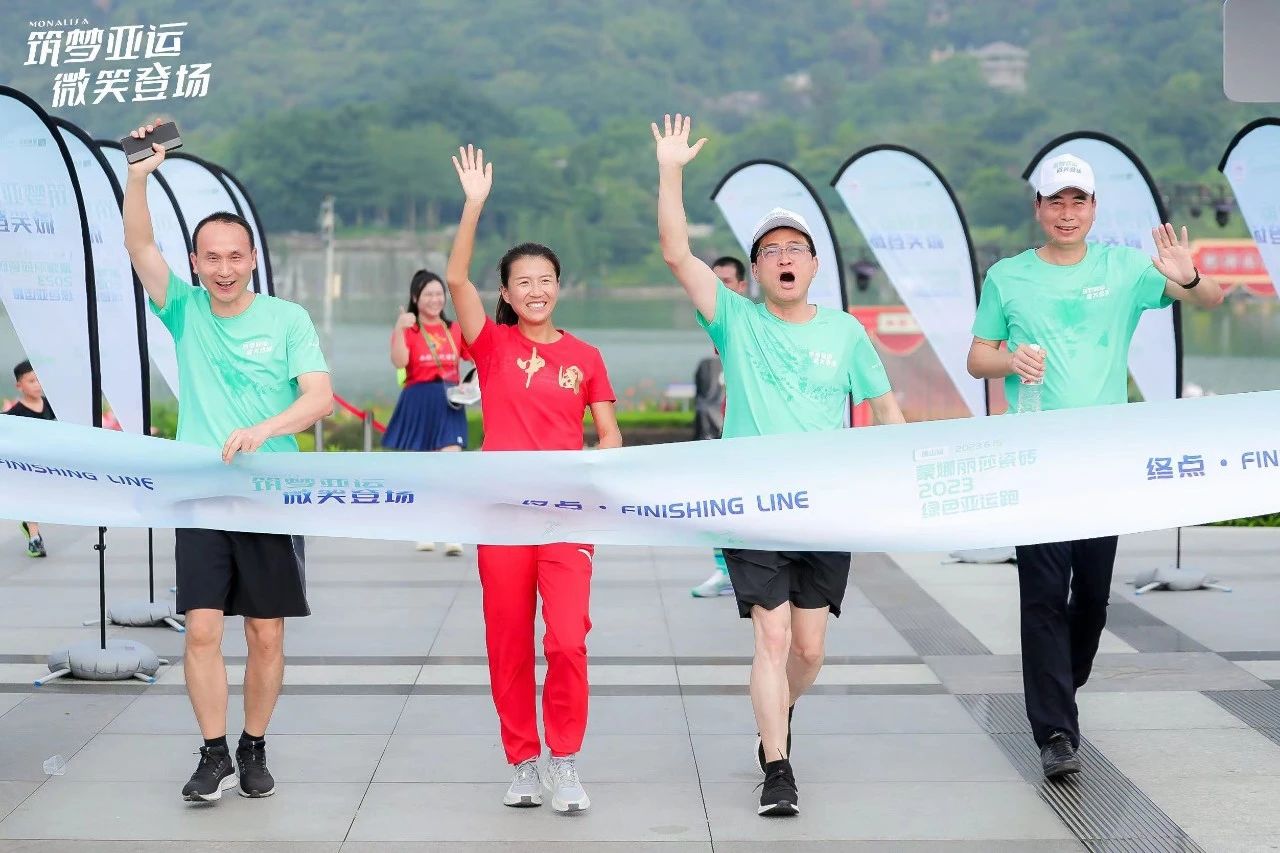 當天下午,由杭州亞組委辦公室指導,杭州亞運會官方建筑陶瓷獨家供應商蒙娜麗莎集團主辦的“筑夢亞運 微笑登場——蒙娜麗莎瓷磚2023綠色亞運跑·佛山站”活動,在國家5A級旅游景區西樵山風景名勝區聽音湖畔舉行,“點燃”全民迎亞運、踐行綠色健康生活的熱情火種。