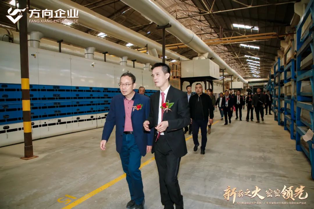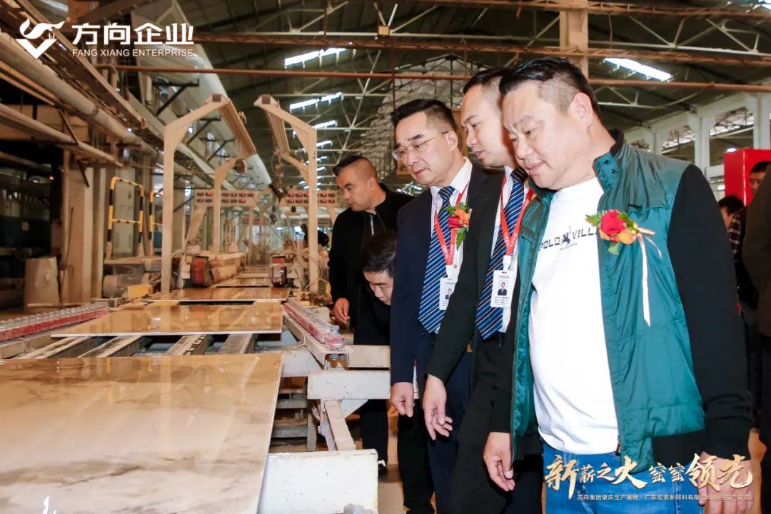 奮進新時代,揚帆再啟航。12月2日,“新薪之火 窯窯領先”方向集團肇慶生產基地·廣東宏景新材料有限公司順利投產。方向集團董事長梁維銘、董事總經理劉麗燕、廣東省建筑材料行業協會常務副會長、廣東陶瓷協會會長陳環、廣東省建筑材料行業協會秘書長、廣東陶瓷協會副會長陳振廣、佛山市陶瓷協會秘書長尹虹博士、國促會制造與建筑專業委會長金亞范、中國工業合作協會家居整裝分會執行會長、廚衛資訊創始人喻鎮榮及行業主流媒體、生產基地主要干部員工等共同見證這一重要歷史時刻,共啟發展新篇章,共繪發展新藍圖。