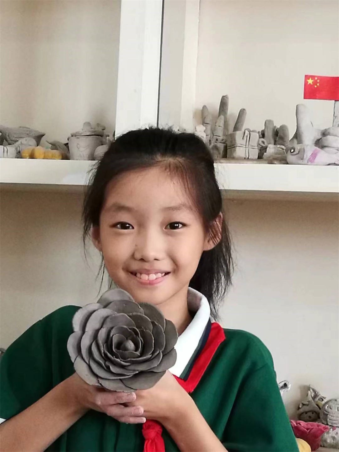 最后,陶藝老師對“小工匠”們一個多小時現場創意十足的“陶泥小作品”贊不絕口,頻頻點贊。“小工匠”們細心、堅持、追求完美、精益求精,這就是工匠精神吧!當一個漂亮、美麗、形態逼真的“陶泥花朵”出現在眼前,同學們都非常欣喜。陶藝與手造工藝勞動實踐活動,讓同學們浸潤式感受指尖創作帶來的樂趣,也領略到中國傳統文化的魅力和藝術感染力。