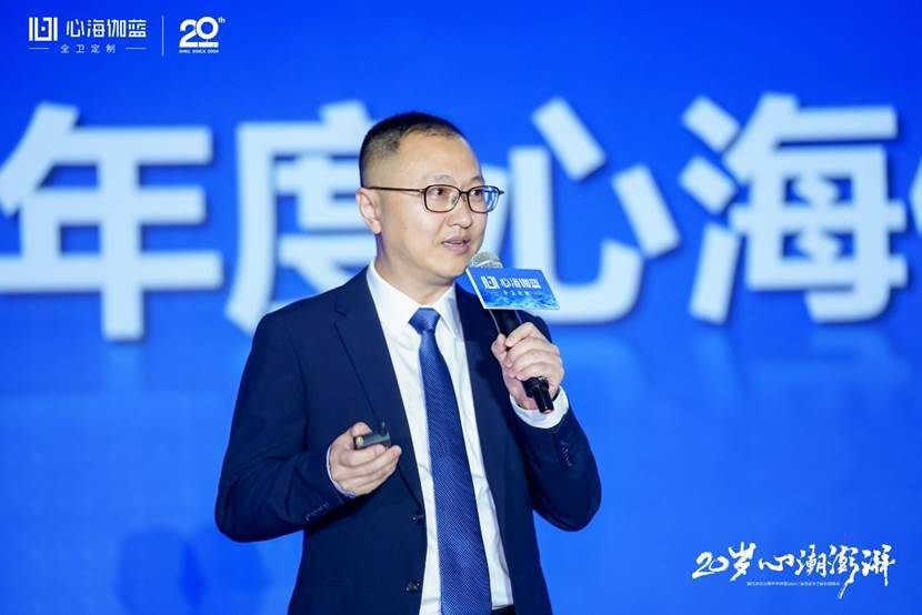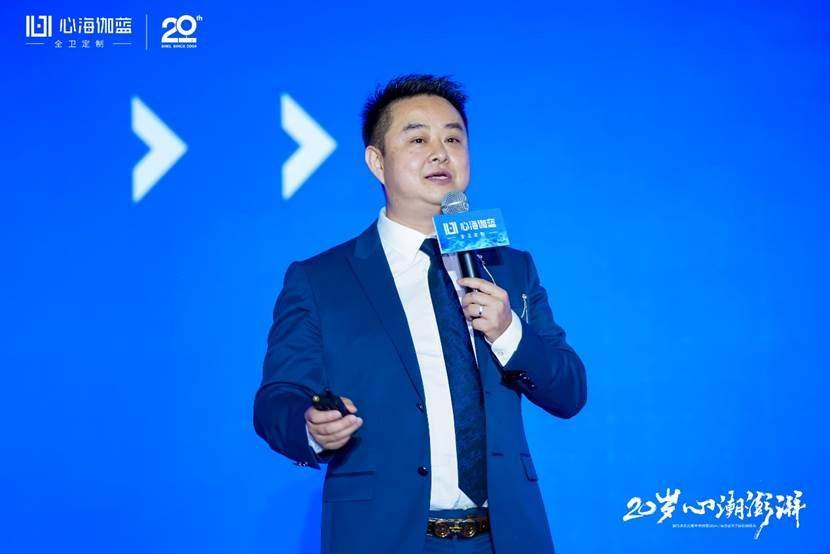 晚宴開(kāi)始,張愛(ài)民董事長(zhǎng)在閃耀燈光中登場(chǎng),熱情洋溢地發(fā)表了20周年報(bào)告。張董真情流露地回顧了公司20年的發(fā)展歷程,從幾個(gè)人的從浴室柜單一品類(lèi)的獨(dú)角獸到全衛(wèi)定制戰(zhàn)略領(lǐng)航,從多品牌運(yùn)作到贏伽電商、凱庭淋浴房,雅頌衛(wèi)浴等七大分公司/中心集團(tuán)發(fā)展,從專(zhuān)賣(mài)區(qū)到全國(guó)百城千家門(mén)店、至商業(yè)版圖覆蓋海外,心海伽藍(lán)始終敢為創(chuàng)新、銳意進(jìn)取,從率先扛起數(shù)智化生產(chǎn)大旗開(kāi)始,心海伽藍(lán)始終堅(jiān)持開(kāi)放分享的態(tài)度,與行業(yè)共同成長(zhǎng)。
