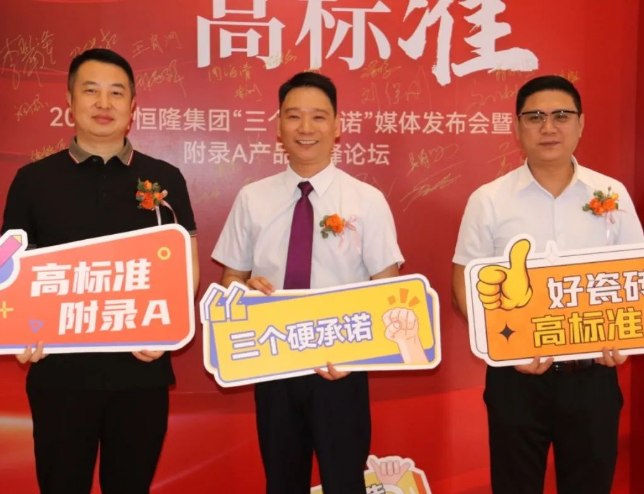 沉淀,皆因篤行而獲;發展,勵新便有新機。6月18日,“好瓷磚 高標準”新恒隆集團“三個硬承諾”媒體發布會暨附錄A產品高峰論壇圓滿成功,集團高層領導、特邀經銷商代表、各大主流媒體齊聚一堂,共同見證了“三個硬承諾”震撼發布,共探企業發展新路徑。