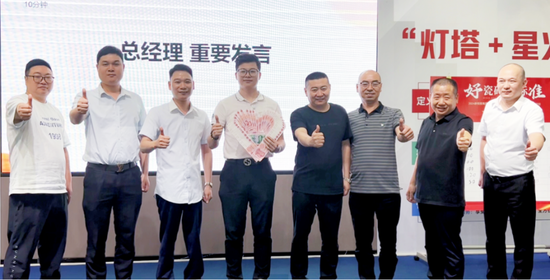 接下來,“三個硬承諾”傳播大使閃亮登場,他們將會是企業發展的有力推動者。每一位傳播大使接過沉甸甸的牌匾,表示著他們將肩負起企業使命,積極響應總部號召,定能在未來工作中爭當表率,全力以赴,將硬承諾的宣貫落實到位,讓每一個消費者放心消費到物超所值的佛山瓷磚,共同打造高標準的佛山陶瓷企業形象,提升企業的美譽度與知名度。