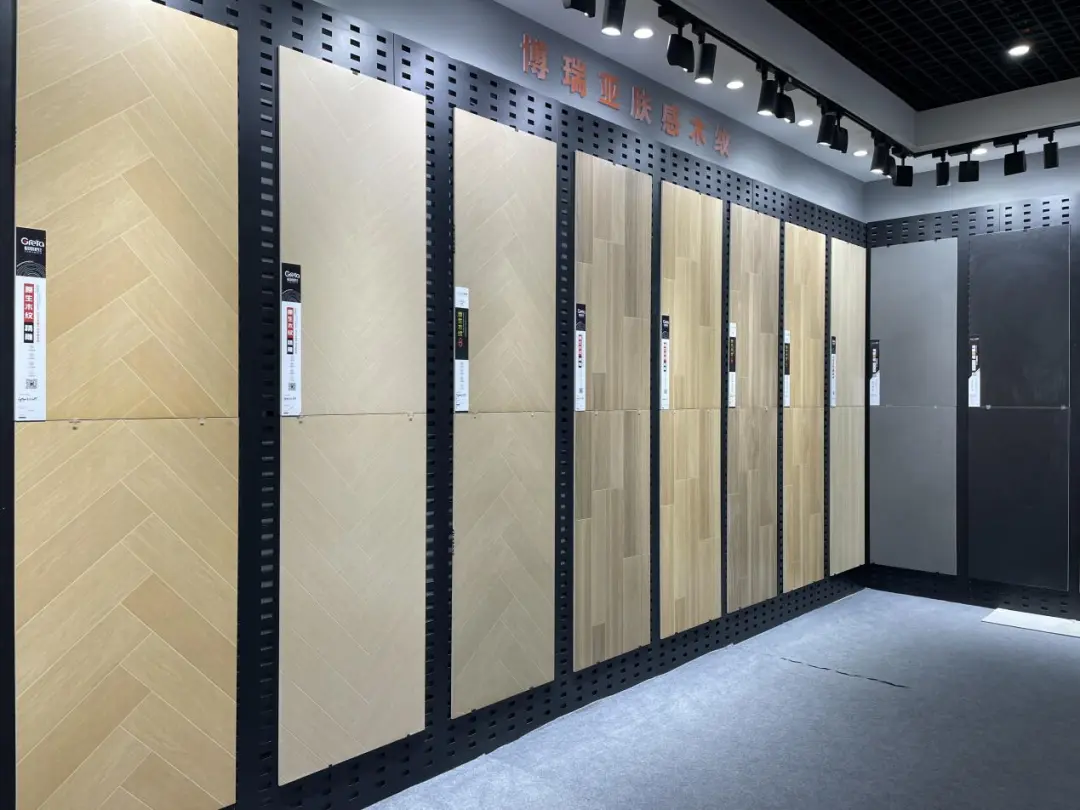 湖北杭瑞企業(yè)作為產(chǎn)區(qū)領(lǐng)軍企業(yè)、行業(yè)頭部企業(yè),全面展示了復(fù)刻釉、玉質(zhì)釉、數(shù)碼釉、1:1大理石、奢石匯、藝墅家系列、高光瓷片。其中,1:1復(fù)刻天然石材的紋理無(wú)限接近石材天然質(zhì)感,玉質(zhì)釉采用自主研發(fā)的高端納米材質(zhì)使觸感升級(jí)、更柔更潤(rùn),數(shù)碼釉還原自然真石的凹凸質(zhì)感。而300×300、300×600mm瓷片有亮光、啞光、純色、網(wǎng)紅對(duì)位格子磚,可承接高中低檔指定品牌工程定制產(chǎn)品。